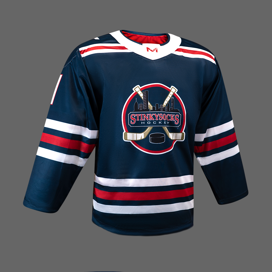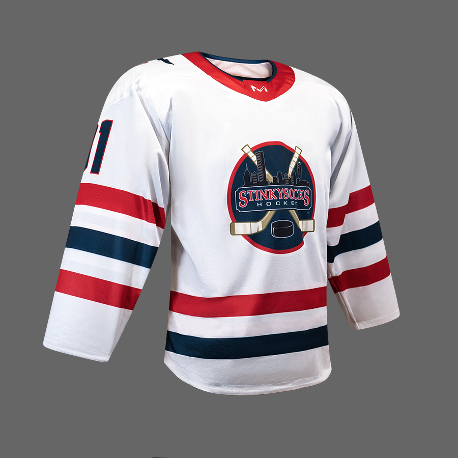 With navy on one side and white on the other, your StinkySocks Hockey Reversible Jersey will be the last and only jersey you'll need to keep in your bag! We use an ultra-lightweight performance material for both layers of material to create a reversible design while reducing bulk. Now lighter than ever, our updated design is actually lighter in weight than a typical pro-style jersey. Both sides will be numbered identically with our unique numbering system. When shipping, we'll register your new number to your account so that it'll be ready for use in any StinkySocks Hockey game upon receipt.