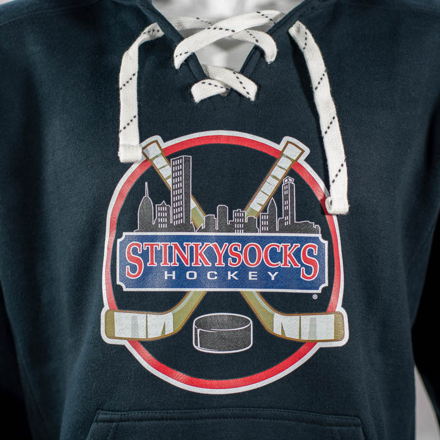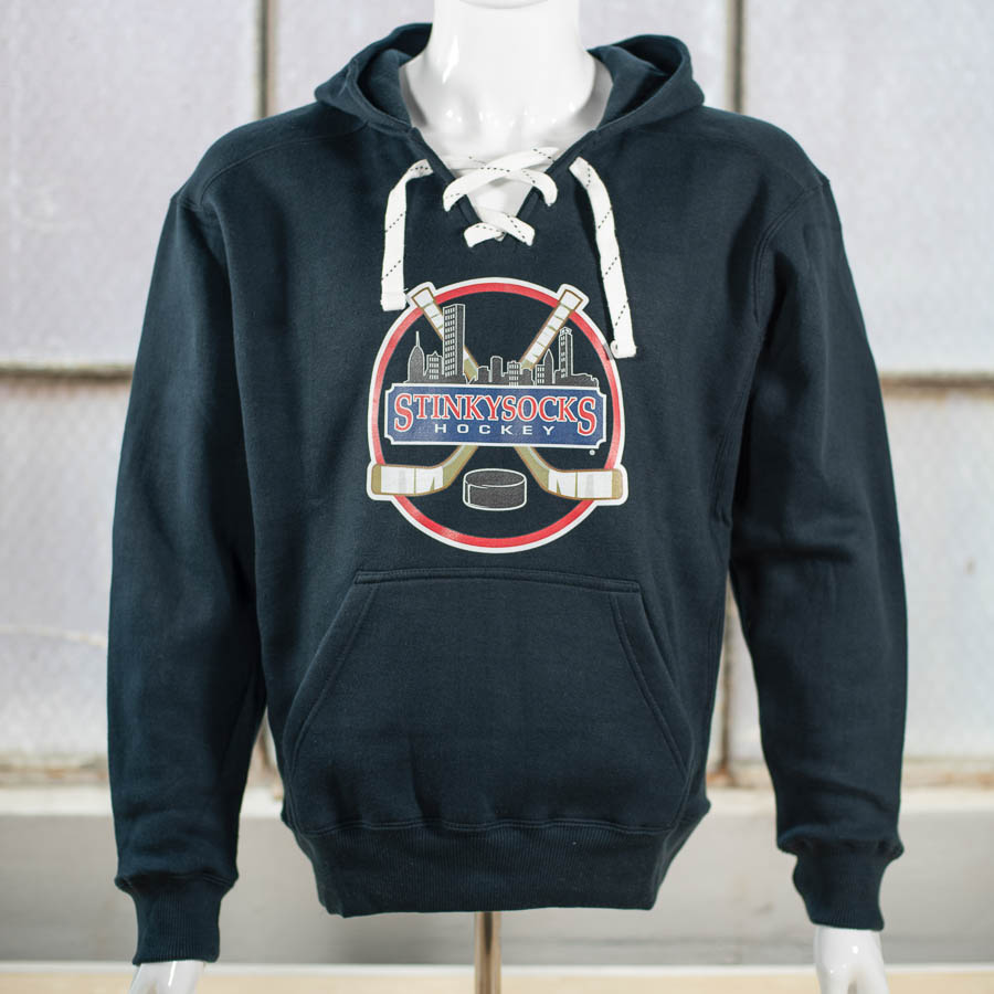 Introduced in 2010, the SSH hoodie was an instant classic. We've brought it back with updated features so that you can arrive at the rink in style. Where ever you choose to wear this comfy fleece-lined sweatshirt, you'll be comfy all day long. It features a kangaroo pocket and a hockey lace tie at the neck. The full SSH logo is in the center.